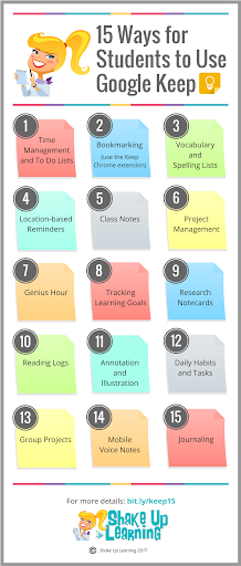 15 Ways For Students To Use Google Keep Infographic Google Education Google Classroom Classroom Technology