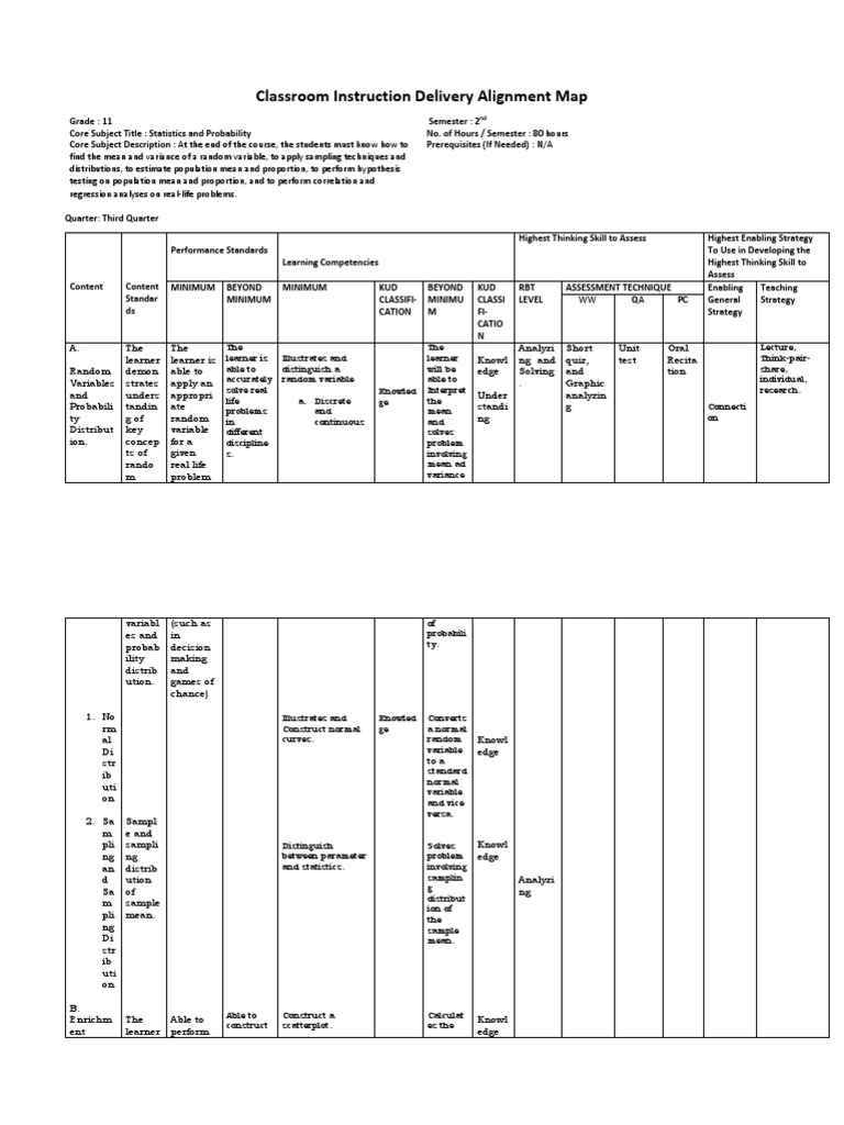 Classroom Instruction Delivery Alignment Map Businnes Docx Classroom Instruction Delivery Alignment Map Grade 11 12 Semester Core Subject Business Course Hero