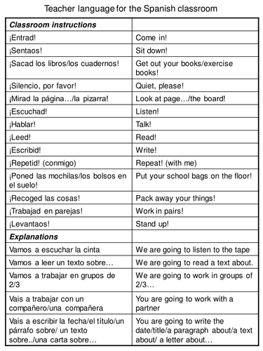 Classroom Instructions Spanish Tes