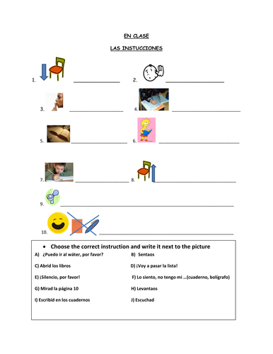 Classroom instructions spanish tes. It includes 10 slides that require students to read the text two times identify the authors purpose and. Show me your pencil. Come to the front of the class.