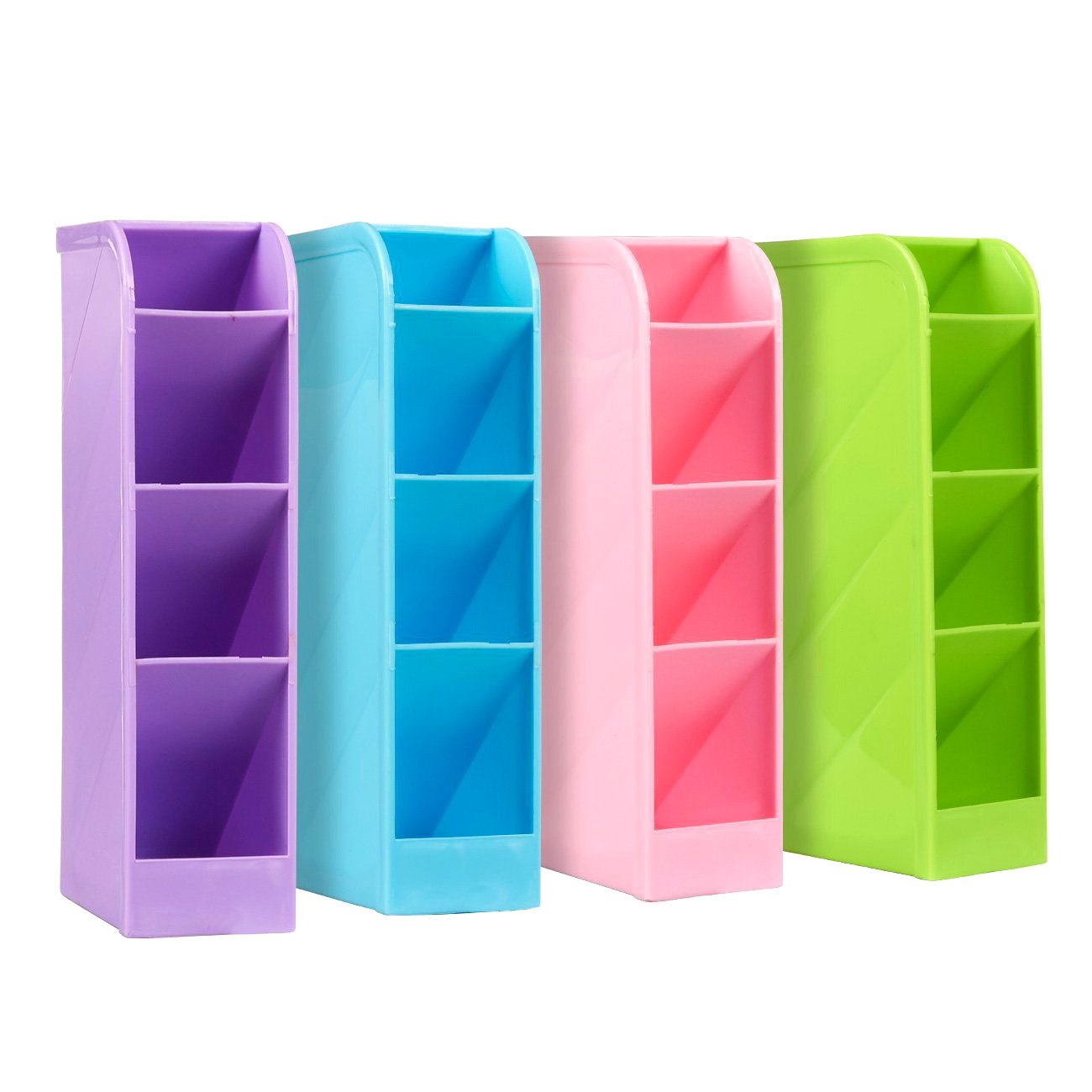 School Desk Pen Caddy Organizer 4 Piece Set School Equipment Storage Holder For Students Teachers 16 Compartments For Pens Erasers And More Green Pink Blue Purple Color Desk Supplies Organisers