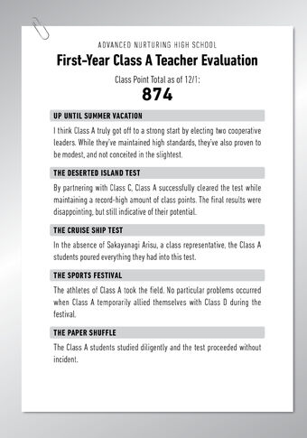 Class D has achieved a degree of unity in facing the special test so Ayanokoji and Horikita head out to see how the other classes are getting along. Ayanokouji Kiyotaka has just enrolled at Tokyo Koudo Ikusei Senior High School where its said that 100 of students go on to college or find employment. A manga adaptation by Yuyu Ichino began its serialization in Media Factorys Monthly.